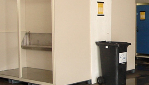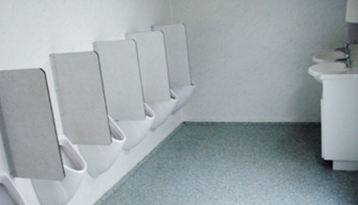 - Duurzame toilet unit met 9 toiletten, 5 waterloze urinoirs en 1 wastafel met 4 kranen